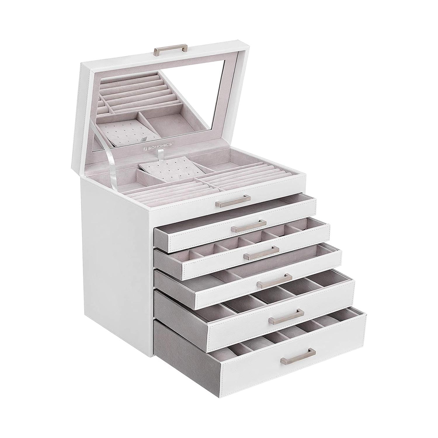 Vi har fundet Theresa Smykkeskrin fra Songmics hos raw58 i kategorien . Opbevar dine skatte sikkert – Opbevar dine dyrebare smykker sikkert i denne boks med 6 etager. Hver skuffe har en stopper, der forhindrer dem i at glide ud, så du kan være tryg ved det. MDF-rammen og fløjlsforet giver også polstring og beskyttelse, så din